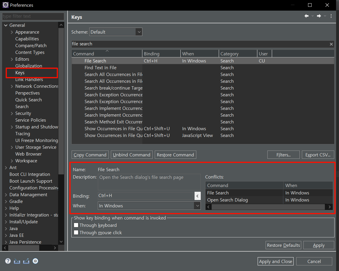 File Search 검색을 하셔서 선택 하시고, Ctrl+H를 등록 해줍니다.